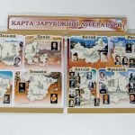 Стенд «Мапа зарубіжної літератури» ілюструє важливих письменників з різних країн світу. На стенді представлено: