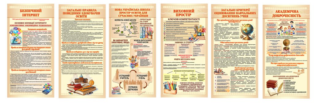 Назад Перейти в В порівняння Комплект стендів для шкільних коридорів “Пастельна серія” (АРТИКУЛ: 4-Булінг-0201) Характеристики Розмір стенда: 50х100 Матеріал стенда: пластик ПВХ товщиною 3 мм. Короткий опис стенда(ів) Стенди присвячені ключовим аспектам сучасної освіти та поведінки у навчальному середовищі. Безпечний інтернет: Розкриває основні функції інтернету, правила безпеки та інтернет-етикету для дітей та підлітків. Загальні правила поведінки: Включає поведінкові норми для учнів, правила використання мобільних телефонів. Нова українська школа: Представляє концепцію освіти, орієнтовану на цінності, модель випускника. Виховний простір: Описує ключові компетентності 21 століття, необхідні для особистісного розвитку. Оцінювання досягнень: Пояснює критерії оцінювання навчальних досягнень учнів. Академічна доброчесність: Визначає принципи та важливість академічної доброчесності в освітньому процесі. Вартість: 3600 грн. ХОЧУ КУПИТИ Замовити допомогу дизайнера Кожен елемент комплекту можна придбати окремо. Додаткова інформація Термін виготовлення: 3-7 робочих днів. Можливість ламінування: Так. +100 грн/м2. Способи доставки: Транспортна компанія "Нова пошта" Способи оплати: Оплата при отриманні;Оплата на карту (передоплата);По перерахунку. Кріплення: В комплекті. Саморізи звичайні. Також вас можуть зацікавити Комплект стендів для шкільних коридорів “Пастельна серія” (АРТИКУЛ: 4-Булінг-0200) Вартість: 4320 ₴ Комплект стендів для шкільних коридорів “Зелені” (АРТИКУЛ: 4-Булінг-0100) Вартість: 4320 ₴ Комплект стендів для шкільних коридорів “Зелені” (АРТИКУЛ: 4-Булінг-0101) Вартість: 3240 ₴ Комплект стендів для шкільних коридорів “Зелені” (АРТИКУЛ: 4-Булінг-0102) Вартість: 2160 ₴ Хіти продажу Стенд “Академічна доброчесність” (Артикул: 4-0011) Вартість: 690 ₴ Вислови про Україну (Артикул: 4-NK_805) Вартість: 690 ₴ Стенд “Символи, що роблять нас українцями. Герб, гімн, прапор” СМ 0116 Вартість: 380 ₴ Стенд “Атестаційний куточок” (Артикул: 4-МК-55) Вартість: 1150 ₴ Категорії стендів: ≡ NEW ≡ Стенди для методичного кабінету школи ≡ Стенди для школи ≡ Стенди про булінг ≡ Права та обов'язки учнів ≡ Стенди для оформлення фойє школи ≡ Стенди для оформлення школи ≡ Стенди для шкільних коридорів ≡ Стенди для школи в учительську