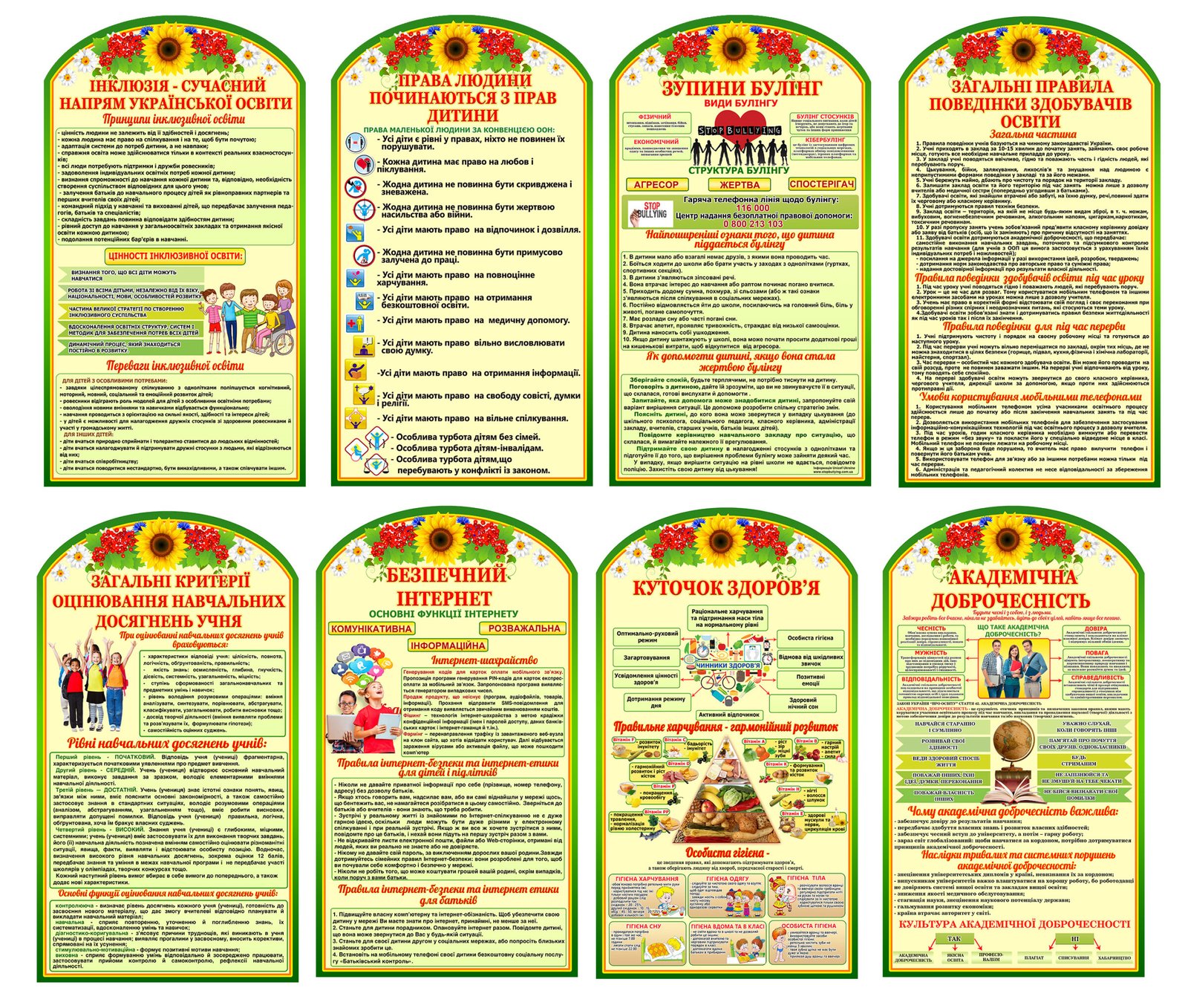 Назад Перейти в В порівняння Комплект стендів для шкільних коридорів “Зелені” (АРТИКУЛ: 4-Булінг-0100) Характеристики Розмір стенда: 50х90см Матеріал стенда: пластик ПВХ товщиною 3 мм. Короткий опис стенда(ів) Стенди містять важливу інформацію з різних аспектів освіти та виховання: Інклюзія: Висвітлюється важливість інклюзивної освіти в Україні, її цінності та переваги. Права дитини: Акцент на права дітей, їх значення та основні положення Конвенції про права дитини. Булінг: Описуються види булінгу, його структура та поради з протистояння. Поведінка здобувачів освіти: Правила загальної поведінки в навчальному закладі. Оцінювання: Критерії оцінювання навчальних досягнень учнів. Безпечний інтернет: Основи безпечного користування інтернетом та його функції. Куточок здоров’я: Інформація про здоровий спосіб життя та харчування. Академічна доброчесність: Принципи академічної доброчесності в освіті. Вартість: 4320 грн. ХОЧУ КУПИТИ Замовити допомогу дизайнера Кожен елемент комплекту можна придбати окремо. Додаткова інформація Термін виготовлення: 3-7 робочих днів. Можливість ламінування: Так. +100 грн/м2. Способи доставки: Транспортна компанія "Нова пошта" Способи оплати: Оплата при отриманні;Оплата на карту (передоплата);По перерахунку. Кріплення: В комплекті. Саморізи звичайні. Також вас можуть зацікавити Стінгазети для оформлення шкільних коридорів (Артикул: 4-Ins-1131) Вартість: 518 ₴ Комплект стендів “Фізична географія” зелені (Артикул: 7-ГЕО-006-1) Вартість: 4435 ₴ Комплект стендів для оформлення коридорів школи (Артикул: 7-ІСД-027) Вартість: 4792 ₴ Комплект стендів для оформлення коридорів школи (Артикул: 7-ІСД-028) Вартість: 4851 ₴ Хіти продажу Стенд “Академічна доброчесність” (Артикул: 4-0011) Вартість: 690 ₴ Вислови про Україну (Артикул: 4-NK_805) Вартість: 690 ₴ Стенд “Символи, що роблять нас українцями. Герб, гімн, прапор” СМ 0116 Вартість: 380 ₴ КОМПЛЕКТ СТЕНДІВ “ДЕРЖАВНА СИМВОЛІКА” (АРТИКУЛ: 4-DS-1041) Вартість: 414 ₴ Категорії стендів: ≡ NEW ≡ Стенди для методичного кабінету школи ≡ Стенди про булінг ≡ Куточки здоров'я для початкової школи ≡ Права та обов'язки учнів ≡ Стенди для оформлення фойє школи ≡ Стенди для оформлення школи ≡ Стенди для шкільних коридорів ≡ Стенди для школи в учительську
