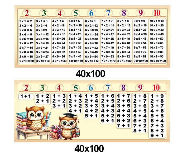 Назад Перейти в В порівняння Комплект стендів із серії “Сови” (Артикул: 4-NK_20004) Характеристики Розмір стенда: 40x100см Матеріал стенда: пластик ПВХ товщиною 3 мм. Короткий опис стенда(ів) Стенди: Два навчальні стенди для вивчення математики. Перший стенд містить таблицю множення від 2 до 10, що допомагає учням запам'ятати базові множення. На другому стенді зображено приклади додавання для чисел від 1 до 10, що сприяє розвитку навичок обчислення у молодших класах. Таблиця множення: Цифри і результати подані у структурованому вигляді для легкого сприйняття. Таблиця додавання: Ілюстрована милими совами, що робить процес навчання веселим і цікавим. Ці стенди ідеально підходять для шкіл та дитячих навчальних закладів. Вартість: 960 грн. ХОЧУ КУПИТИ Замовити допомогу дизайнера Кожен елемент комплекту можна придбати окремо. Додаткова інформація Термін виготовлення: 3-7 робочих днів. Можливість ламінування: Так. +100 грн/м2. Способи доставки: Транспортна компанія "Нова пошта" Способи оплати: Оплата при отриманні;Оплата на карту (передоплата);По перерахунку. Кріплення: В комплекті. Саморізи звичайні. Також вас можуть зацікавити Наклейка “Компоненти дій. Сови” (Артикул: 4-NK-713) Вартість: 140 ₴ Наклейки “Осередки. Сови” (Артикул: 4-NK-632) Вартість: 160 ₴ Комплект стендів з математики для початкової школи (Артикул: 3-1800) Вартість: 609 ₴ Комплект стендів “Зелений” (Артикул: 4_00002) Вартість: 1438 ₴ Хіти продажу Комплект стендів ” Мовна та математична скриньки” (Артикул: 4-NK-650) Вартість: 1440 ₴ Вислови про Україну (Артикул: 4-NK_805) Вартість: 690 ₴ Стенди ” Скарбнички” (Артикул: 4-NK-643) Вартість: 1380 ₴ Математична та мовна скарбничка (Артикул: 4-NK-211) Вартість: 1104 ₴ Категорії стендів: ≡ NEW ≡ Стенди для НУШ ≡ Стенди для початкових класів ≡ Комплекти стендів для початкової школи ≡ Математичні куточки для початкової школи