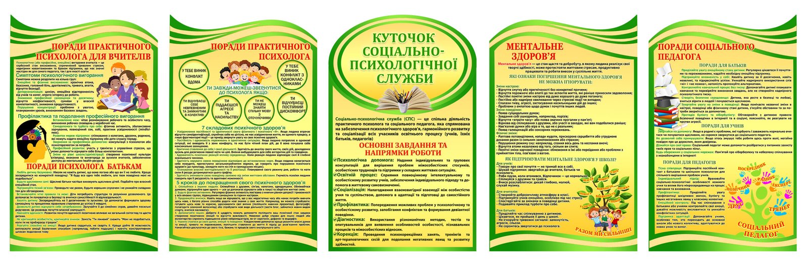 Назад Перейти в В порівняння Комплект стендів в кабінет психолога (АРТИКУЛ: 4-PS-0026) Характеристики Розмір стенда: 50x80 см Матеріал стенда: пластик ПВХ товщиною 3 мм. Короткий опис стенда(ів) Стенд "Куточок соціально-психологічної служби" містить корисну інформацію для вчителів, учнів та батьків, спрямовану на підтримку психологічного здоров'я та добробуту. Він включає поради для практичних психологів та соціальних педагогів, а також методи профілактики професійного вигоряння для вчителів. Поради психолога для вчителів: включають симптоми психологічного вигоряння та способи його профілактики. Поради для батьків: про важливість підтримки дітей у школі та вдома. Ментальне здоров’я: включено ознаки проблем, яких не варто ігнорувати, та шляхи їх вирішення. Стенд закликає до співпраці для забезпечення психологічного комфорту в освітньому середовищі. Вартість: 2400 грн. ХОЧУ КУПИТИ Замовити допомогу дизайнера Кожен елемент комплекту можна придбати окремо. Додаткова інформація Термін виготовлення: 3-7 робочих днів. Можливість ламінування: Так. +100 грн/м2. Способи доставки: Транспортна компанія "Нова пошта" Способи оплати: Оплата при отриманні;Оплата на карту (передоплата);По перерахунку. Кріплення: В комплекті. Саморізи звичайні. Також вас можуть зацікавити Комплект стендів для кабінету хімії (Артикул: 4-VM-0026) Вартість: 3623 ₴ Комплект стендів для психолога (Артикул: 7-ПСХ-001) Вартість: 942 ₴ Набір стендів “Права та обов’язки учнів” НУШ 0026 Вартість: 260 ₴ Коплект стендів для психолога (Артикул: 7-ПСХ-002) Вартість: 3549 ₴ Хіти продажу Стенд “Академічна доброчесність” (Артикул: 4-0011) Вартість: 690 ₴ Вислови про Україну (Артикул: 4-NK_805) Вартість: 690 ₴ Стенд “Символи, що роблять нас українцями. Герб, гімн, прапор” СМ 0116 Вартість: 380 ₴ КОМПЛЕКТ СТЕНДІВ “ДЕРЖАВНА СИМВОЛІКА” (АРТИКУЛ: 4-DS-1041) Вартість: 414 ₴ Категорії стендів: ≡ NEW ≡ Стенди для кабінету психолога ≡ Поради психолога ≡ Стенди для оформлення школи