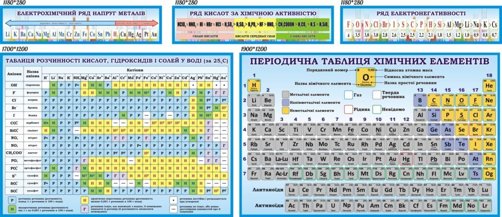 Назад Перейти в В порівняння Навчальний комплект пластикових стендів з хімії (Артикул: 3-1040) Характеристики Розмір стенда: 1180мм.×280мм.×3шт., 1700мм.×1200мм., 1900мм.×1200мм. Матеріал стенда: пластик ПВХ товщиною 3 мм. Короткий опис стенда(ів) Стенди охоплюють важливі хімічні концепції. Електрохімічний ряд напруг металів: показує тенденції в електрохімічних властивостях елементів. Ряд кислот за хімічною активністю: класифікує кислоти за їх силою. Ряд електронегативності: ілюструє відносну здатність атомів притягувати електрони. Таблиця розчинності кислот, гідроксидів і солей: визначає їх поведінку у воді при 25°C. Періодична таблиця хімічних елементів: представляє елементи з базовими характеристиками, такими як порядковий номер, символ та агрегатний стан. Вартість: 7712 грн. ХОЧУ КУПИТИ Замовити допомогу дизайнера Кожен елемент комплекту можна придбати окремо. Додаткова інформація Термін виготовлення: 3-5 робочих днів. Можливість ламінування: Немає. Способи доставки: Транспортна компанія "Нова пошта" Способи оплати: Оплата на рахунок (передоплата 100%);По перерахунку. Кріплення: Не додається. Також вас можуть зацікавити Навчальний комплект пластикових стендів «Математика» (Артикул: 3-1020) Вартість: 7332 ₴ Комплект пластикових стендів з хімії «Мудрість науки» (Артикул: 3-1033) Вартість: 813 ₴ Комплект пластикових стендів «Час спорту» (АРТИКУЛ: 3-0443) Вартість: 2504 ₴ Комплект пластикових стендів «Безпека життєдіяльності дітей» (Артикул: 3-2361) Вартість: 3311 ₴ Хіти продажу Портрети видатних хіміків в асортименті (Артикул: 3-1082) Вартість: 124 ₴ Стенд для кабінету хімії «Вислови відомих» в асортименті (Артикул: 3-2297) Вартість: 178 ₴ Комплект стендів для кабінету хімії (Артикул: 1-І-47) Вартість: 3487 ₴ Набір стендів для оформлення кабінету хімії (Артикул: 3-2086) Вартість: 6127 ₴ Категорії стендів: ≡ Стенди в кабінет хімії ≡ Комплекти стендів для кабінету хімії