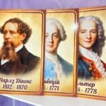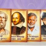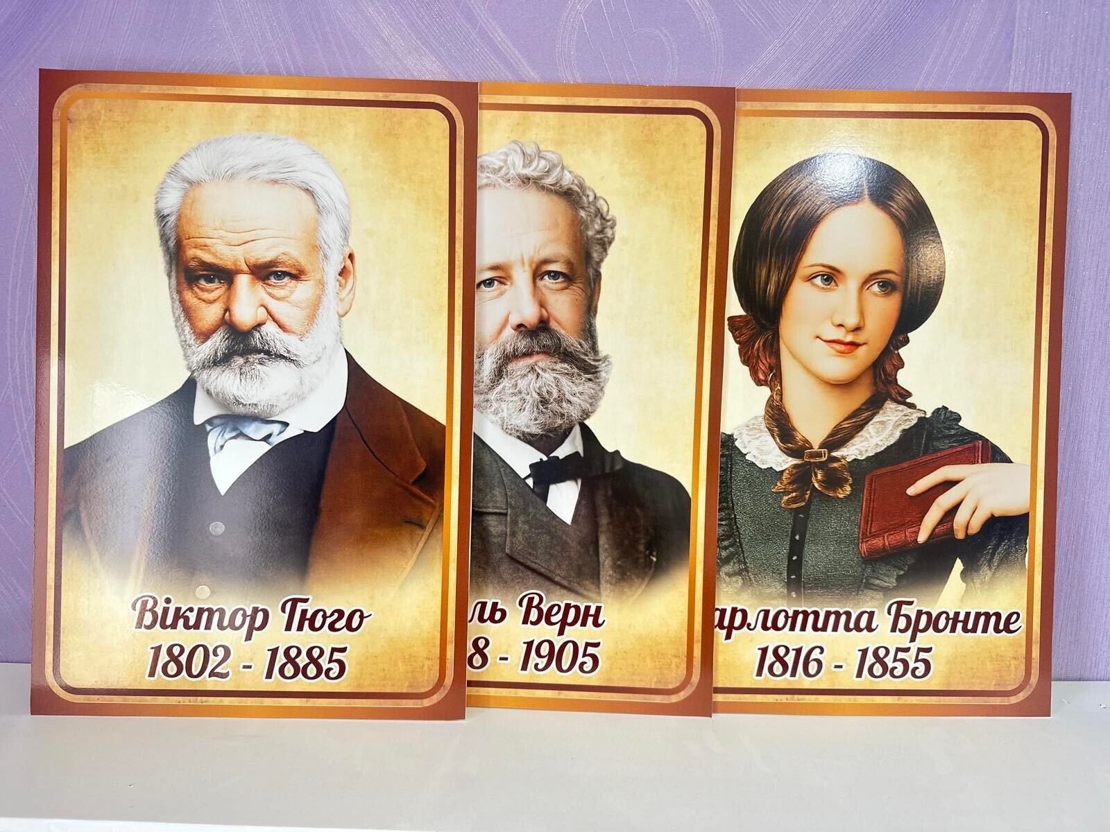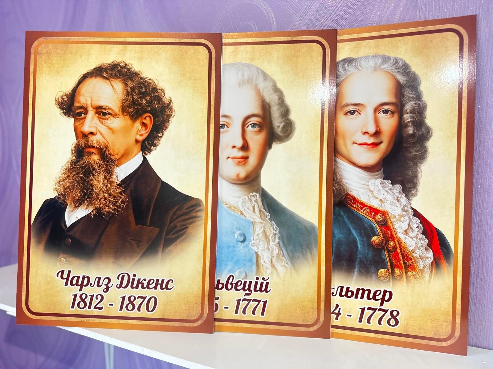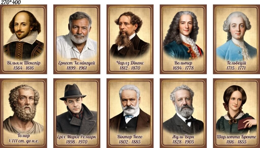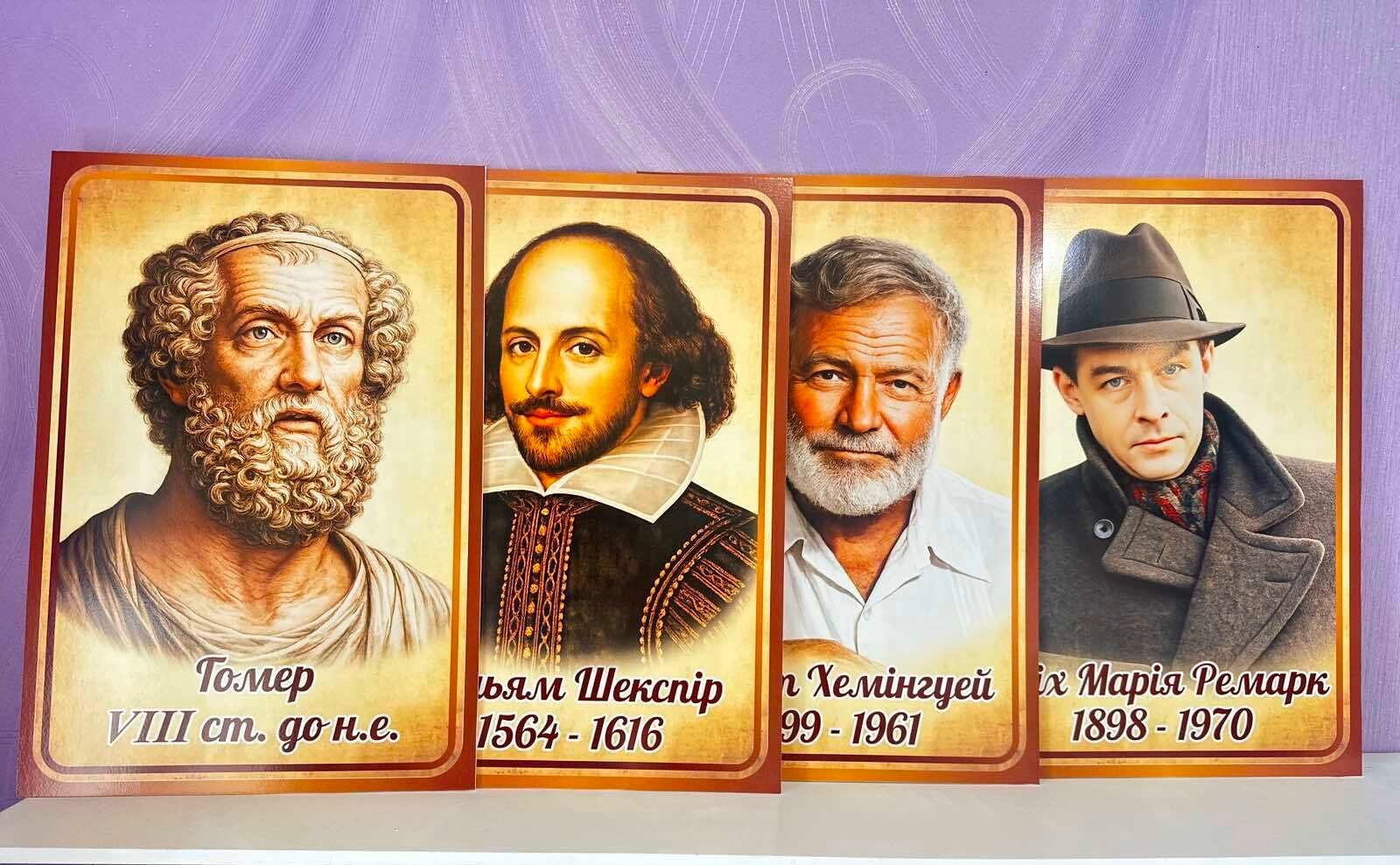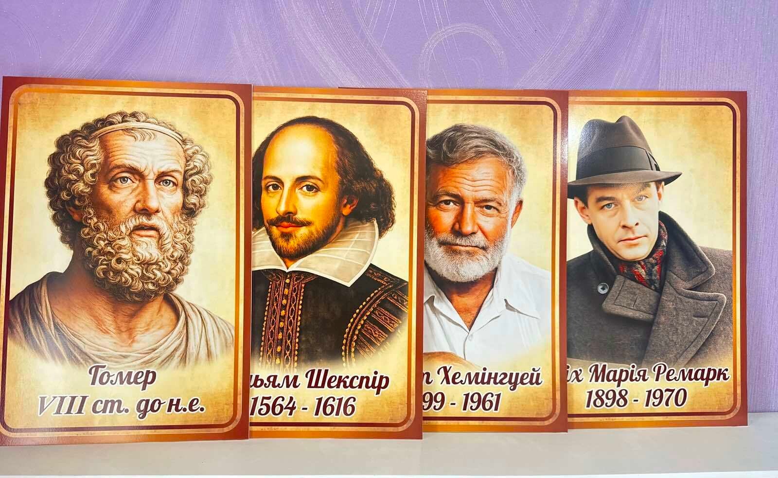 Стенд присвячений видатним письменникам різних епох та країн, які залишили значний слід у світовій літературі.