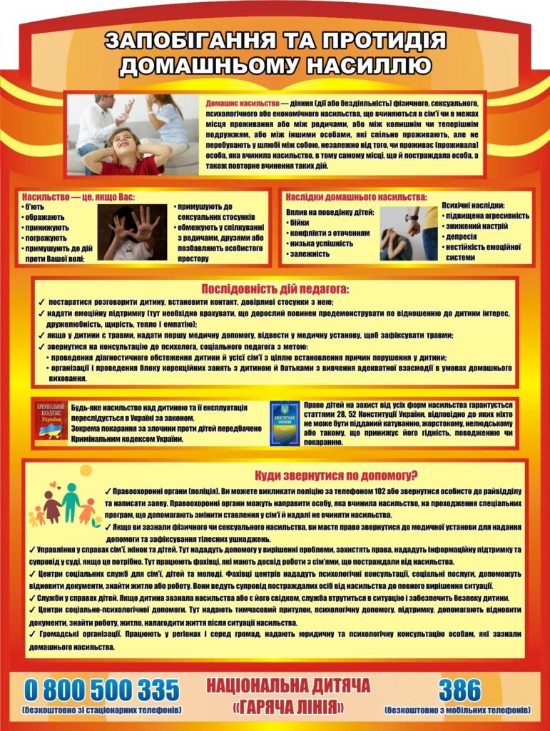 Стенд присвячений проблемі запобігання та протидії домашньому насильству.