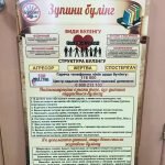 Стенд присвячений темі булінгу та має назву "Зупини булінг". Він інформує про типи булінгу, такі як фізичний, економічний, булінг стосунків та кібербулінг, і про структуру, яка включає агресора, жертву та спостерігача.