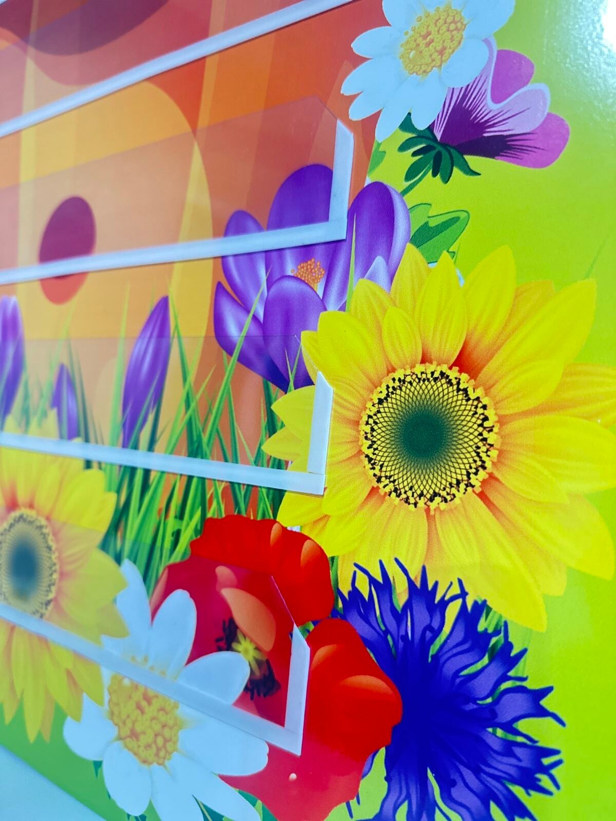 Стенд має кілька секцій, куди можна вставляти картки — це робить його корисним інструментом для вчителів та вихователів у навчальному процесі.
