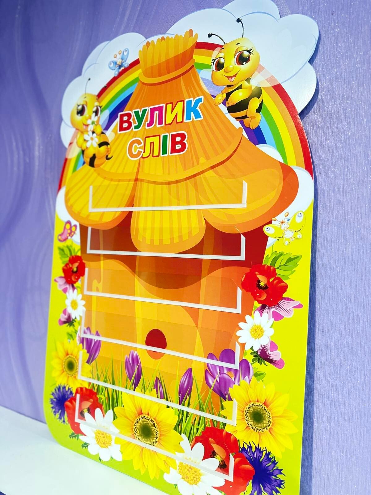 Стенд "Вулик слів" призначений для навчання дітей у веселій та інтерактивній формі.