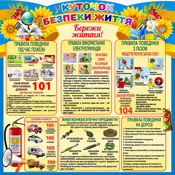 Цей стенд служить важливим джерелом інформації для забезпечення безпеки в повсякденному житті.