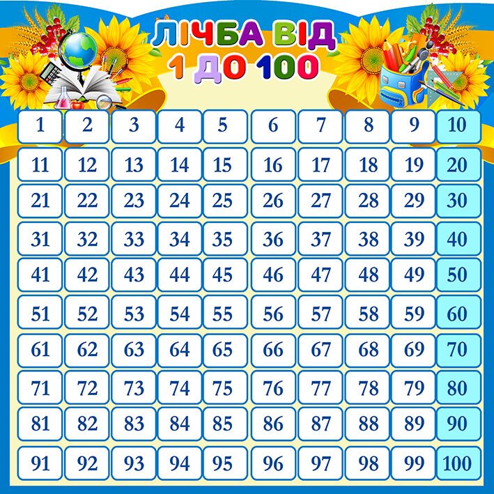 Стенд "Лічба від 1 до 100" призначений для вивчення чисел у початковій школі.