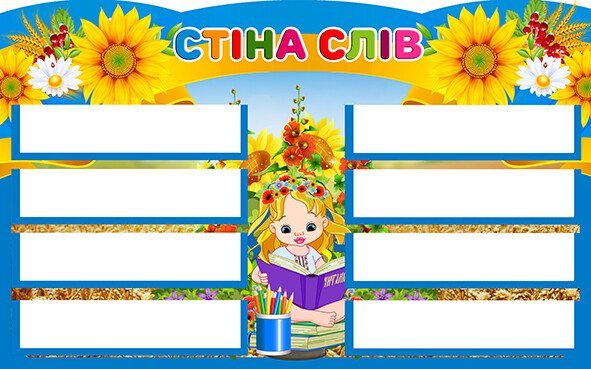 Стенд "Стіна слів" призначений для навчання дітей новим словам і розширення їх словникового запасу. Дизайн яскравий і дружній для дітей, з квітковими мотивами та зображенням дитини з книгою. Стенд містить кілька секцій для розміщення карток або аркушів з новими словами. Такий стенд може використовуватися у класних кімнатах або навчальних приміщеннях для залучення уваги дітей та мотивації до вивчення нової лексики. Він також сприяє створенню інтерактивного навчального середовища, заохочуючи дітей писати і запам’ятовувати нові слова.