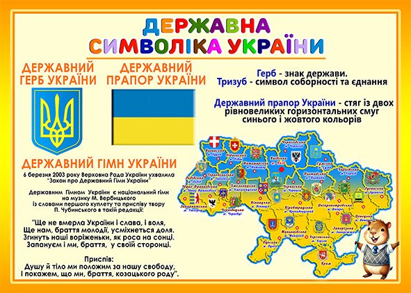 Стенд присвячений державній символіці України.